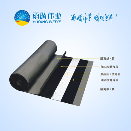 產品簡介 自粘聚合物改性瀝青防水卷材是采用聚酯氈為胎基,兩面涂彈性體(SBS)改性瀝青,上表面覆聚乙烯膜、細砂或礦物粒料等隔離材料,下表面條涂自粘橡膠瀝青,并附可剝離的涂硅隔離膜或涂硅皺紋隔離紙作為隔離材料制成的一種自粘防水卷材。